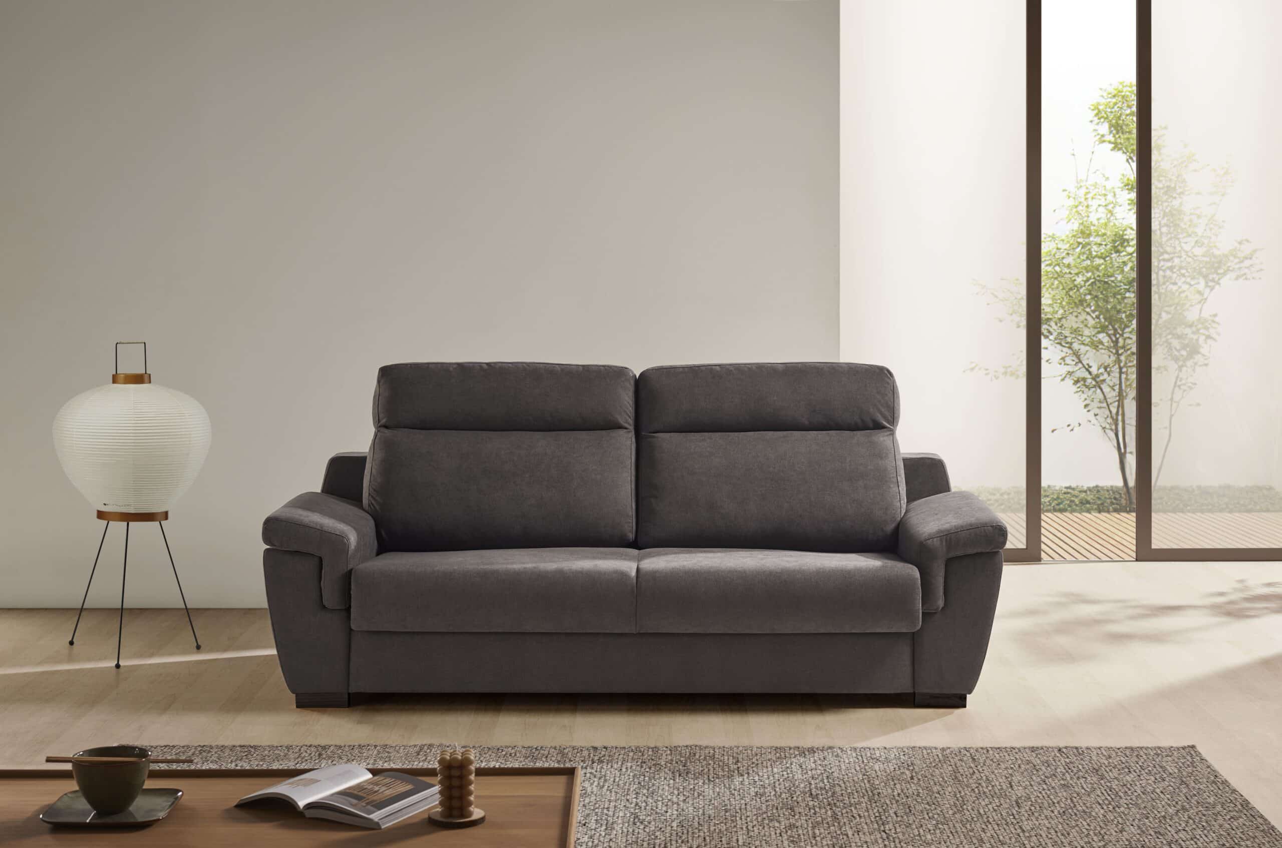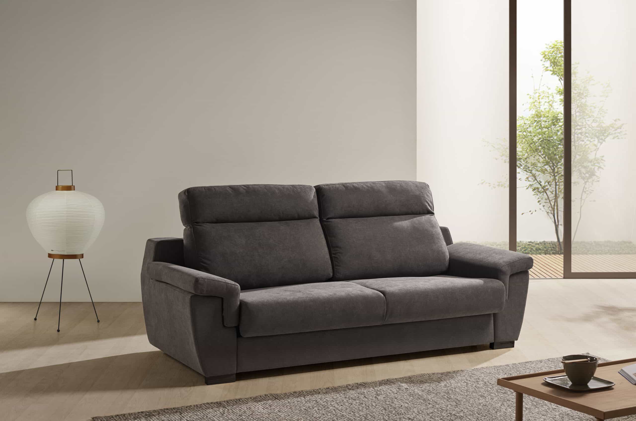 Sistema de apertura italiano, armazón de madera de pino y tablero de partículas recubierto de espuma PUR de varias densidades. Estructura de brazo metálica. Mecanismo interno metálico antioxidante pintado con epoxi.