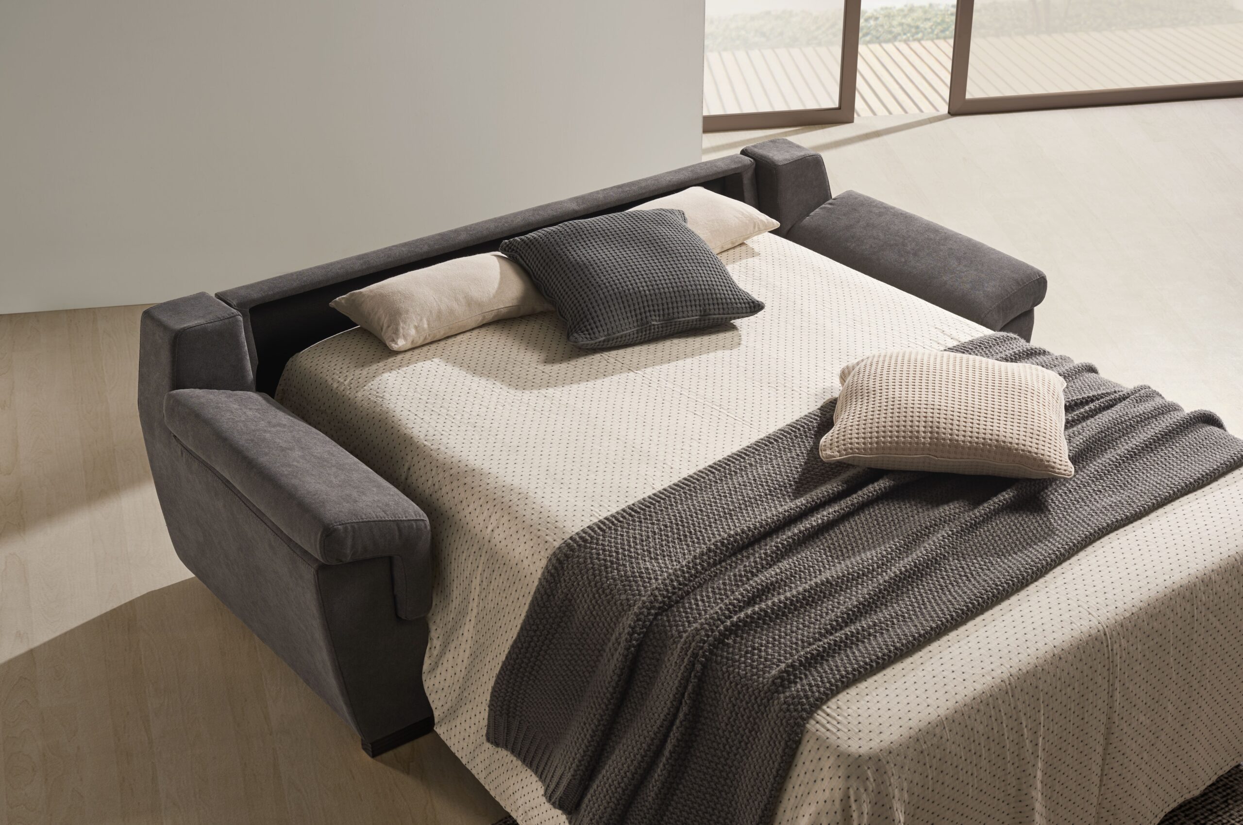 Sofá cama con colchón de 140×200 cm y un grosor de 18 cm. Garantía del mecanismo: 5 años.