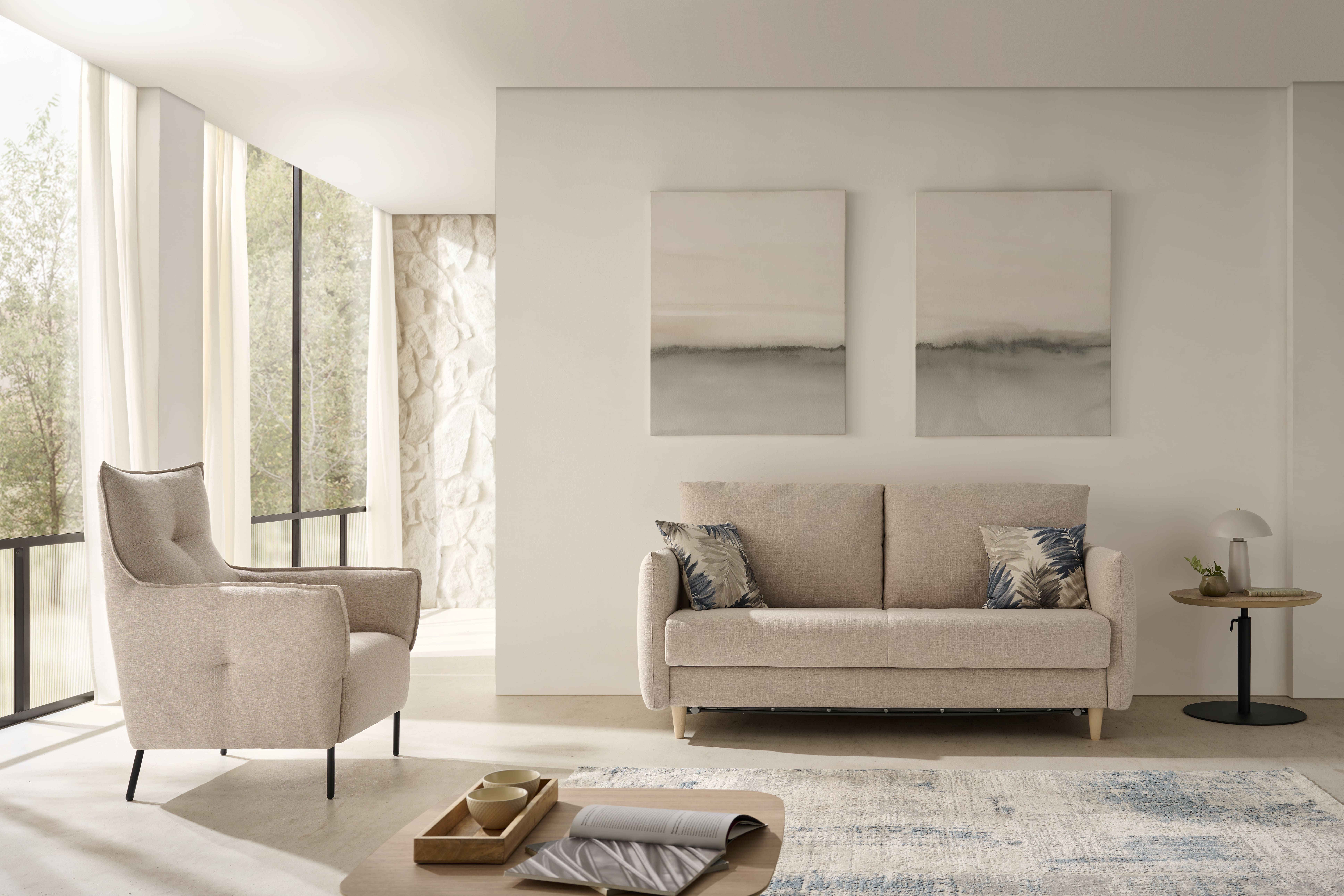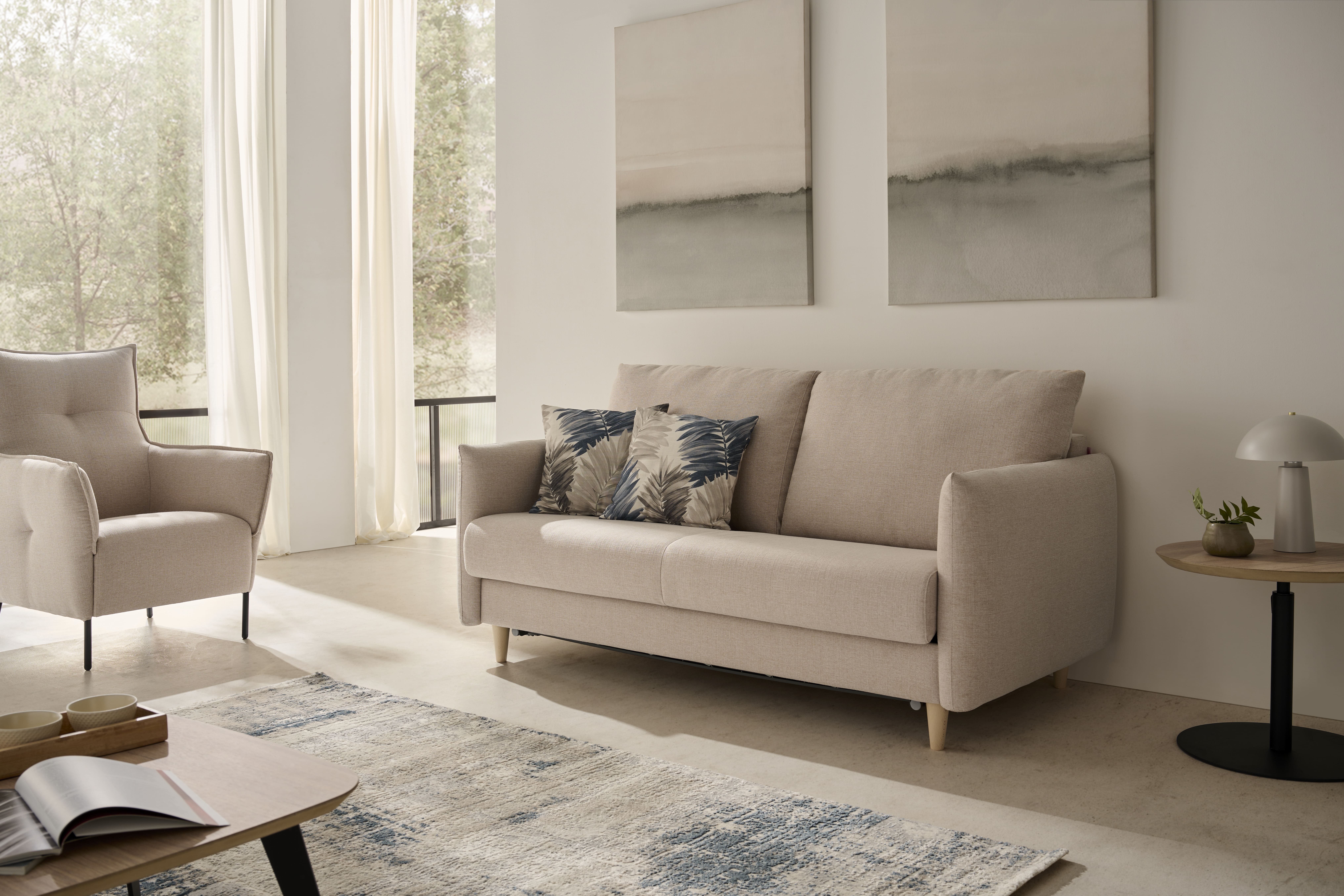 Sofá cama con colchón de 140×200 cm, con distintos modelos a elegir. Garantía del mecanismo: 5 años.