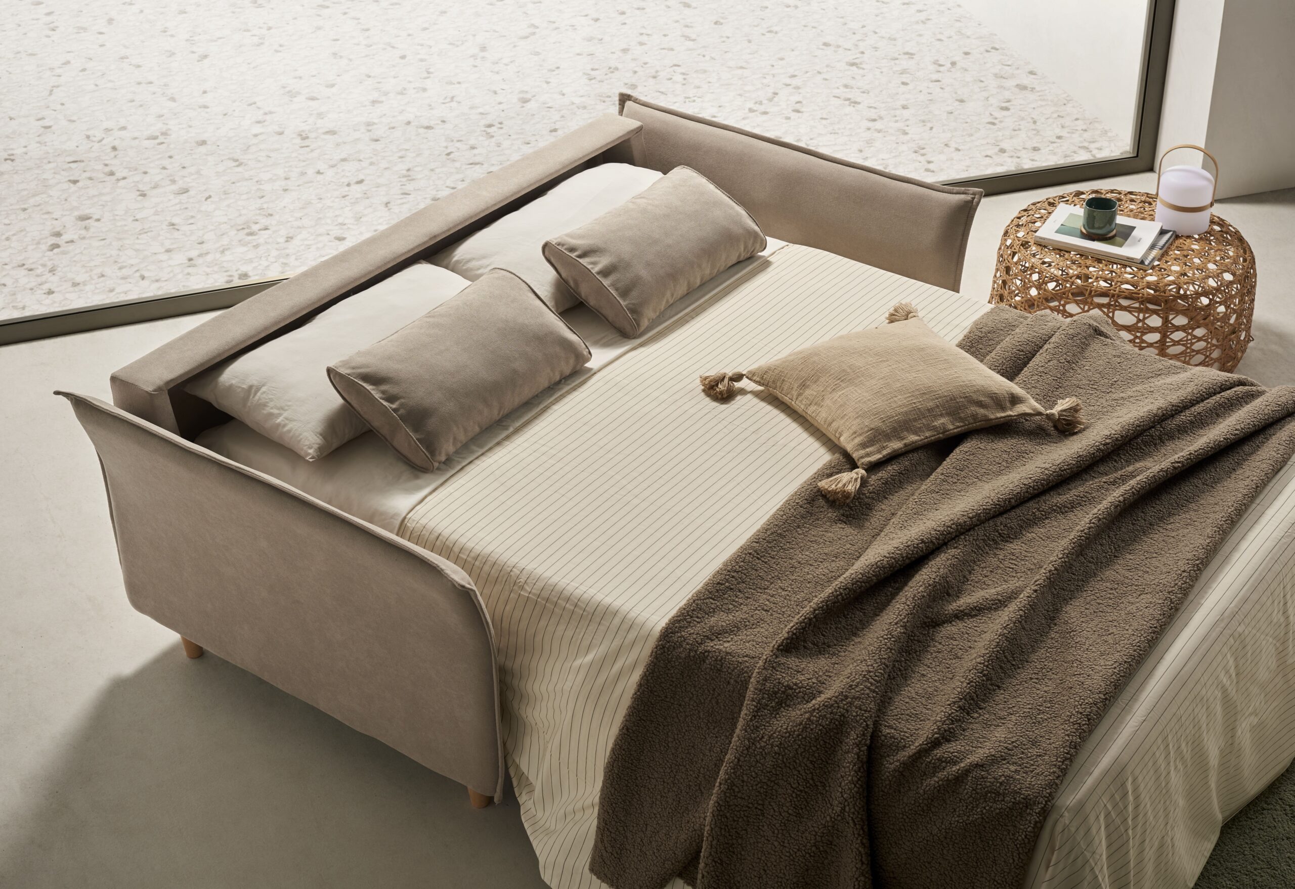 Sofá cama con colchón disponible en distintas medidas: 120×200, 140×200 y 160×200 cm. Varias opciones de colchón a elegir. Garantía del mecanismo: 5 años.